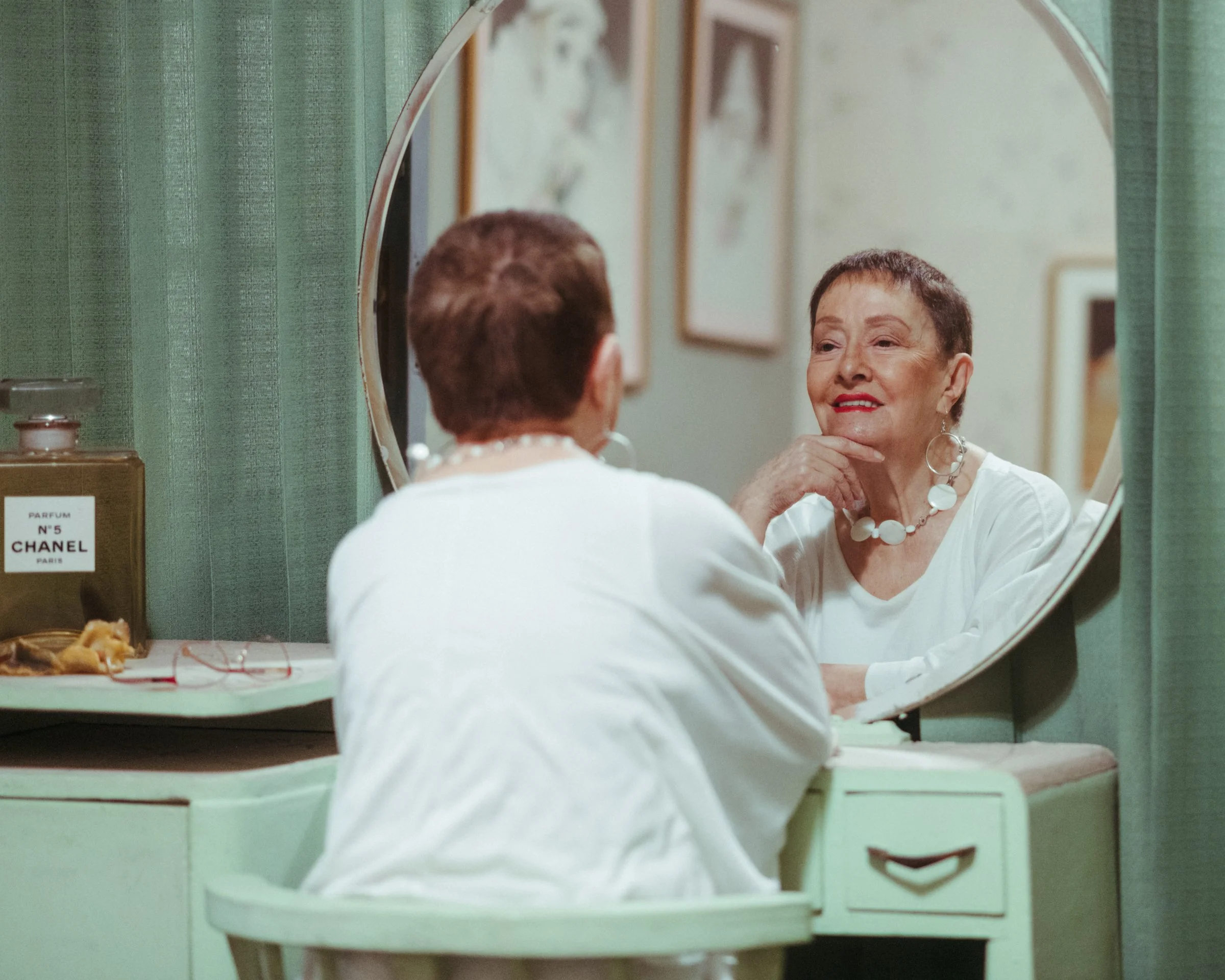 These scenes showcase who she is and the house that has been her home for many years. We went through each of the rooms, reminiscing about important moments in her life; from her wedding to her love for art. Since I've known her, she has been my inspiration: her intelligence, her beautiful way of living, her kindness, her impeccable taste in fashion, and her wonderful attitude make her a truly unique and special woman at the age of 92.